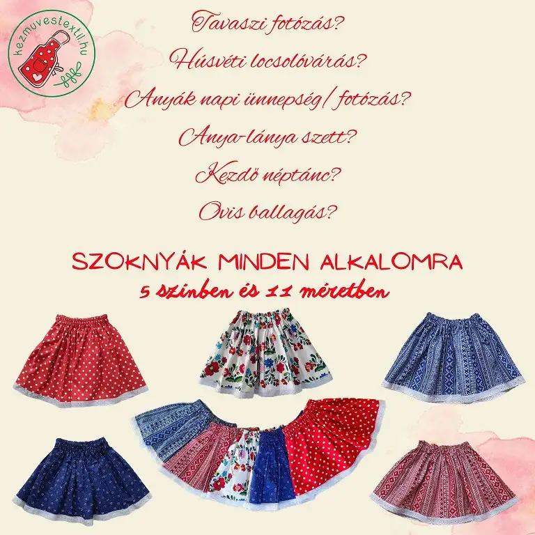 Gyerek kötények: Lányoknak és fiúknak egyaránt elérhetőek hímzett feliratos vagy letisztult, hagyományos mintázatú gyerek kötények. Számos gyerek kötény mintája azonos a női kötények mintájával, így mama-anya-lánya/fia szetteket is össze tudtok válogatni.